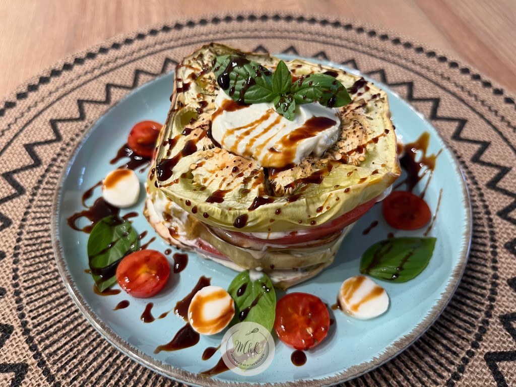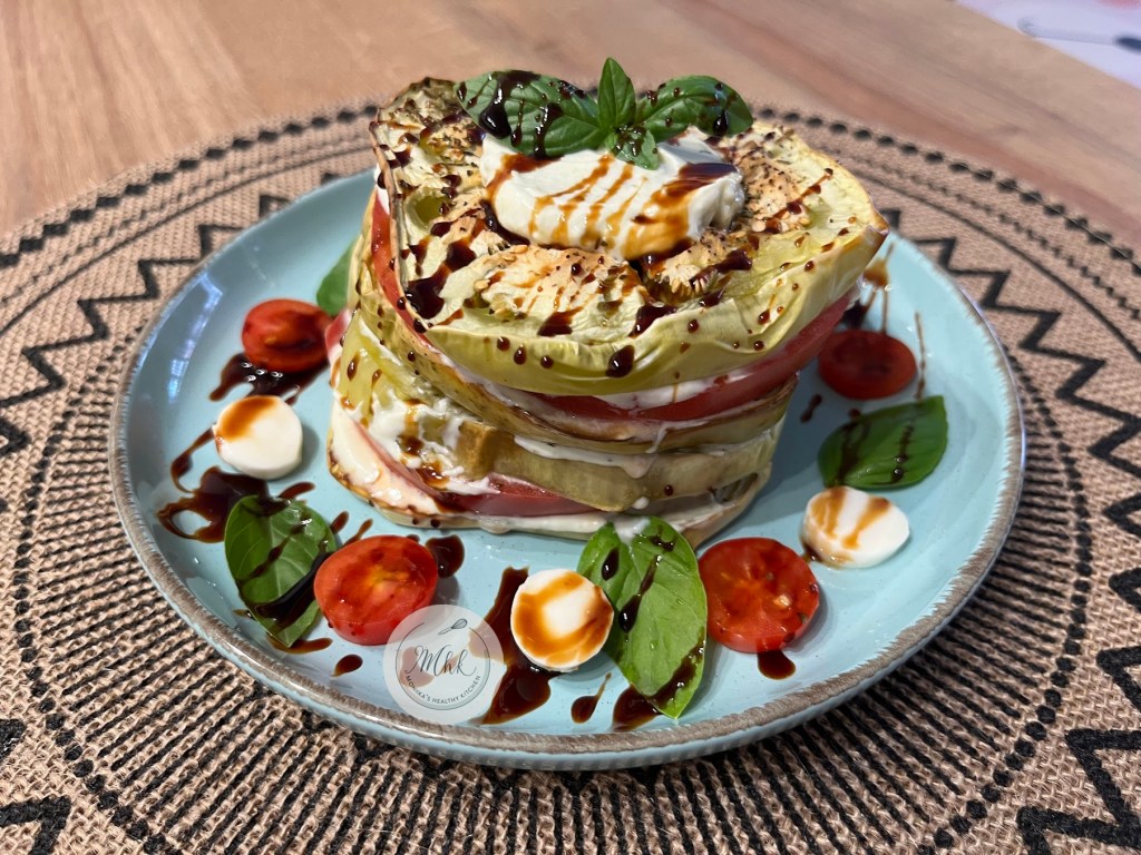 🍆🥗 “Tower of Flavor” – Eggplant, Tomato & Cottage Cheese Salad