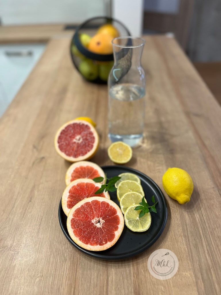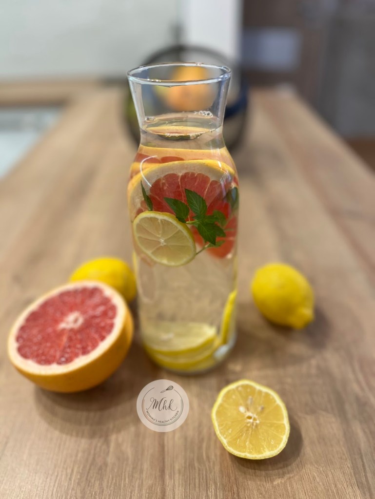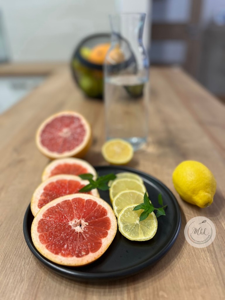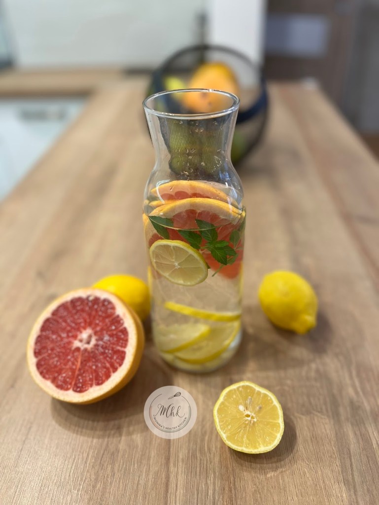 Тази ароматна витаминна вода е перфектният начин да започнеш деня – свежа, леко цитрусова и естествено хидратираща. Комбинацията от лимон, грейпфрут и мента пречиства, освежава и събужда организма, без никакви подсладители.