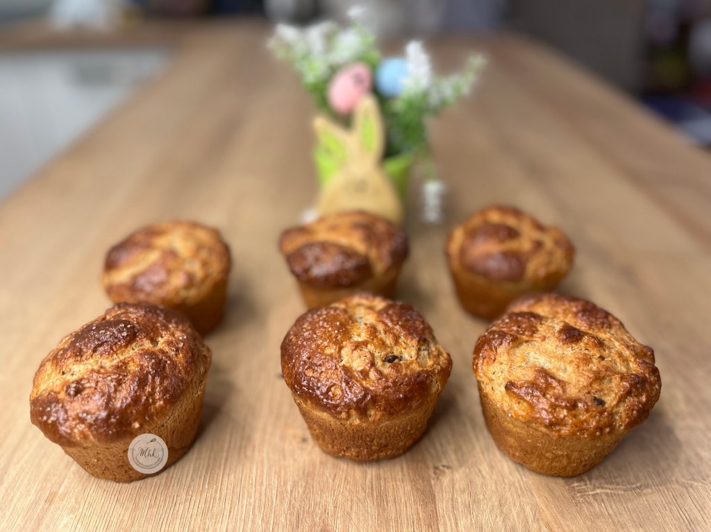 - Оставете оформените мъфини да починат около 10 минути. Намажете с отделения белтък и поръсете леко с кафява захар.